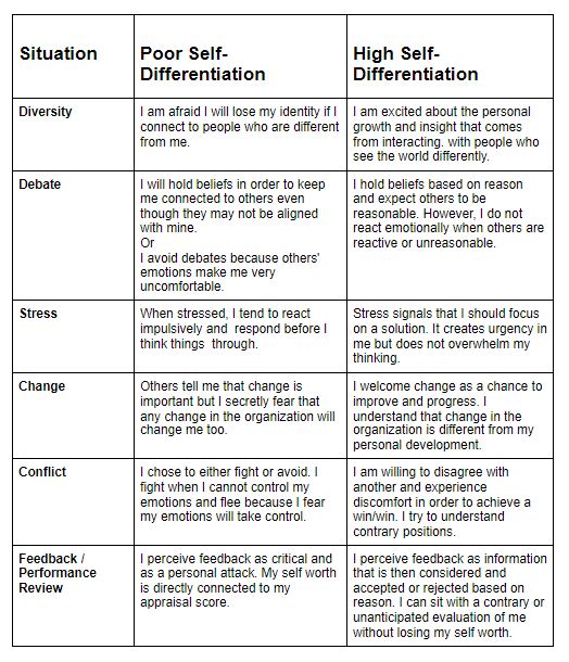 To put differentiation of self in context, here are a few situations where leaders’ self-differentiation is revealed.